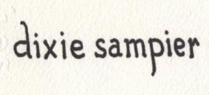 While at the hospital with a lot of time to think, I decided to write my name as many ways that I could possibly design it and see if I could come up with a good logo to use on my paintings. I knew too much about hand writing analysis and did not want anyone to figure me out while they looked at my signature. In fact, I didn’t like it when one could not read an artist’s signature on a painting, so I chose to use small case letters of my first and last name and thought that made a cute design, “dixie sampier” and as you can see here in this image,